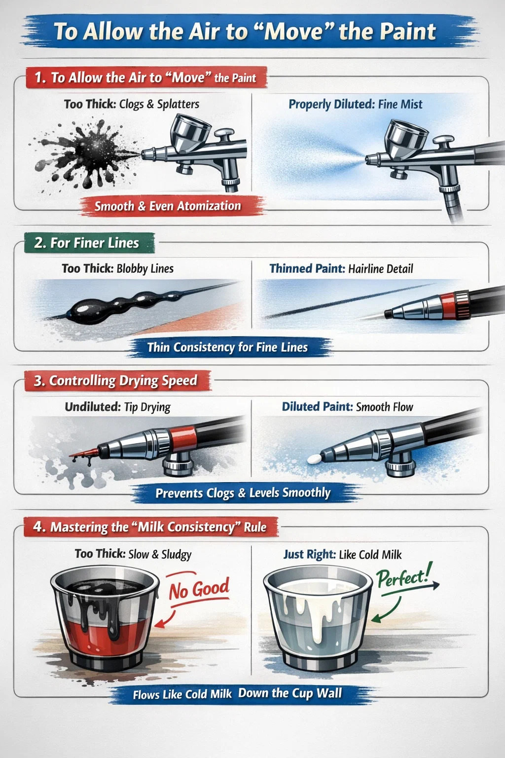 Si vis capillos tenues lineas cum airbrush depingere, dilutio maxime momenti fit.