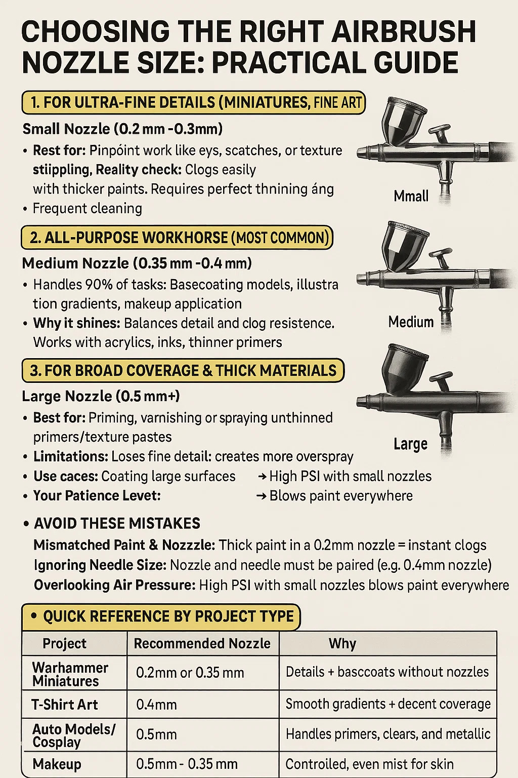 Crassis coloribus (primers, metallicis) ampliores nozzles indigent.